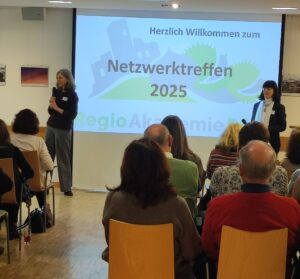 Bereits beim Eintreffen der Teilnehmenden war die positive Atmosphäre spürbar: Bis zum Beginn nutzten viele die Gelegenheit, um sich nach längerer Zeit persönlich wiederzusehen oder neue Kontakte zu knüpfen. Das offizielle Programm startete um 14 Uhr mit einer Begrüßung durch unsere Leiterin Antje van Look und einer der beiden Organisatorinnen Ute Seitz, sowie einer kurzen Zusammenfassung der Umfrage der RegioAkademie aus dem Jahr 2024, die gleichermaßen mit ihrem Fazit auch Ideengeberin war für diese Veranstaltung.