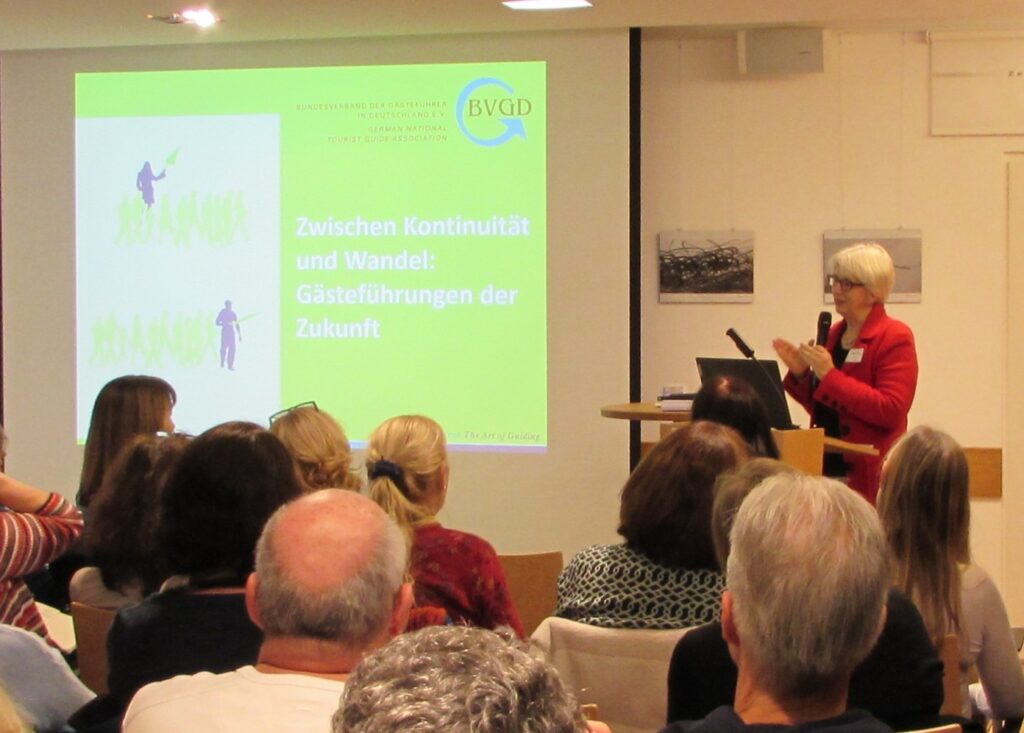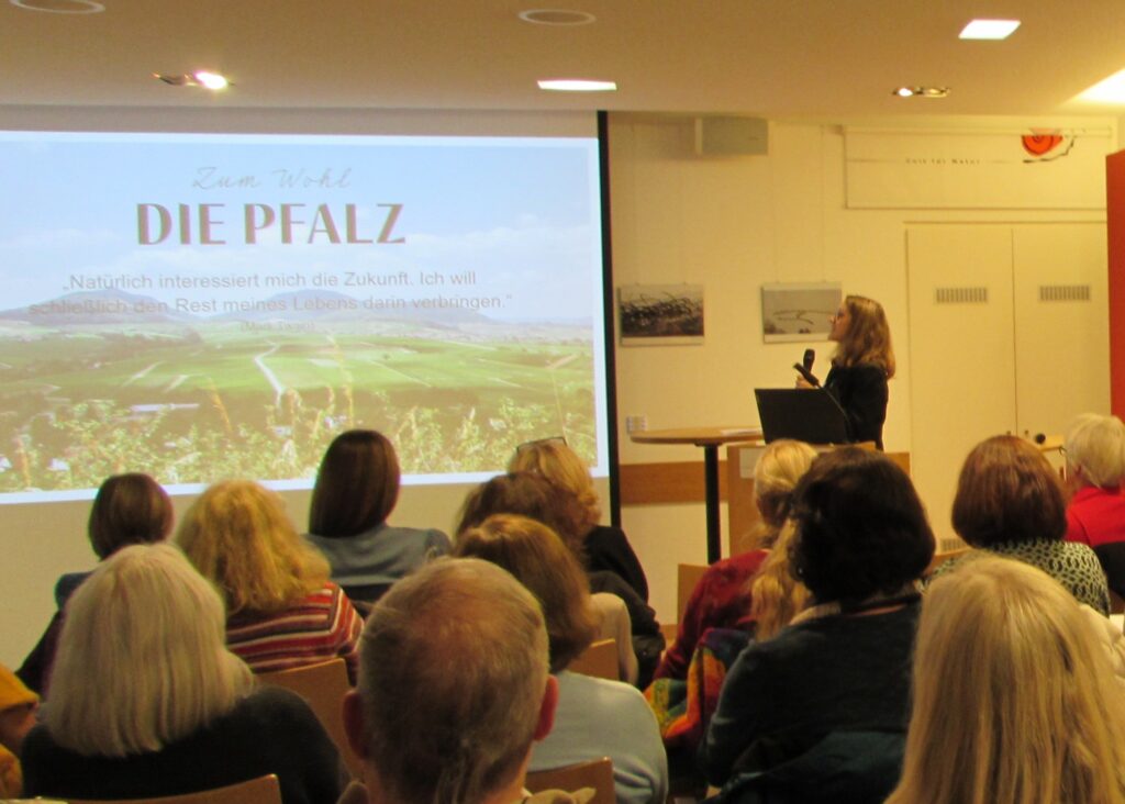 Auf dem Programm standen Impulsvorträge zur Situation der Gästeführenden in Deutschland von Maren Richter vom BVGD (Bundesverband der Gästeführer Deutschlands), und Nadine Schubert vom Pfalz Touristik e.V. sprach zum Thema „Nachhaltiger Tourismus in der Pfalz“. Besonders danken wir dem Verein Südliche Weinstraße e.V. für die Unterstützung zum Vortrag von Prof. Dr. Gergely Szolnoki von der Hochschule Geisenheim Universität zu aktuellen Trends und Innovationen im Weintourismus.